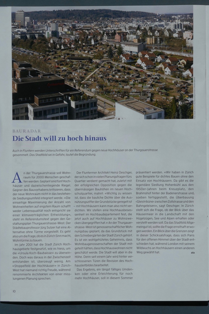 - Unheilige amour fou oder folgenloser Seitensprung? Die geplanten Wohntürme an der Thurgauerstrasse bringen das politische Gefüge in Zürich durcheinander / NZZ vom 30. Januar 2020